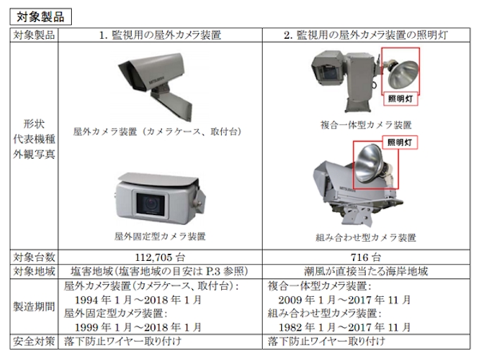 点検 部品追加 三菱 海岸付近設置の監視カメラ 腐食 落下恐れ Id リコールプラス
